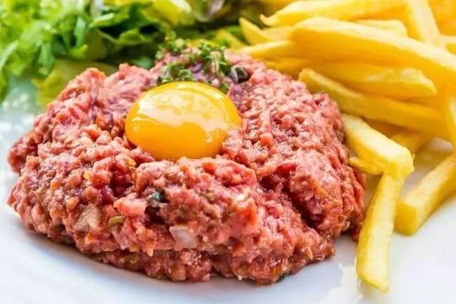 没错就是这种和生肉的组合,可以搭配面包,意大利面,沙拉薯条一起吃。