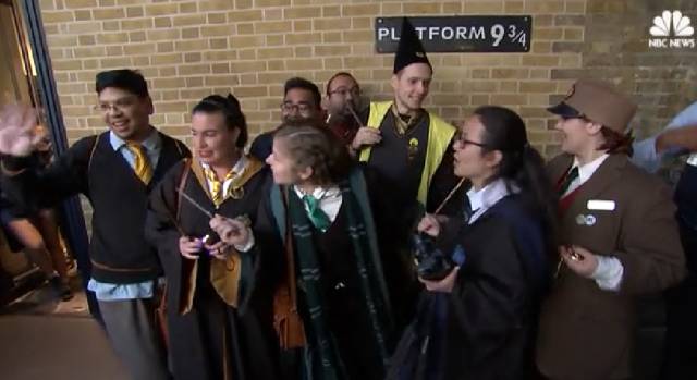 很多粉丝跑到小说中写到的国王十字火车站,来庆祝这一个时刻……