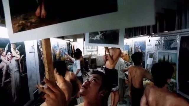 有的时候为了赶一笔订单 他们会熬整个通宵 乏了就抽一根烟 实在坚持不住就席地而睡 打个盹在接着画 画室就像家一样 所有的行动都可以在 那个狭小拥挤的房间进行