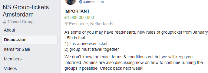 今天,不少FB上的团票小组也立马纷纷发布了群公告。而有的小组,今天宣布了要解散……
