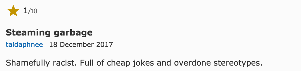 “歧视亚裔、歧视女性并且一点都不好笑”,我想告诉这三位导演编剧及主演: