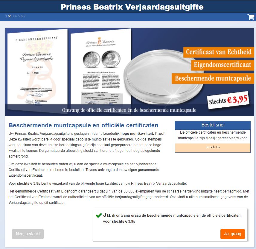-需要,点击“Ja,graag”,多支付4.95欧元 -不需要,点击“Nee,bedankt”