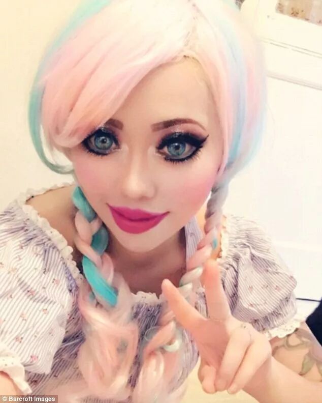 于是,在变成白人芭比娃娃的路上,Ophelia对自己的身体进行了很多改造,