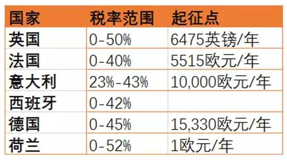 如图所示,西欧国家征税标准中,荷兰是税最高的了! 而2017年上半年税率如下👇