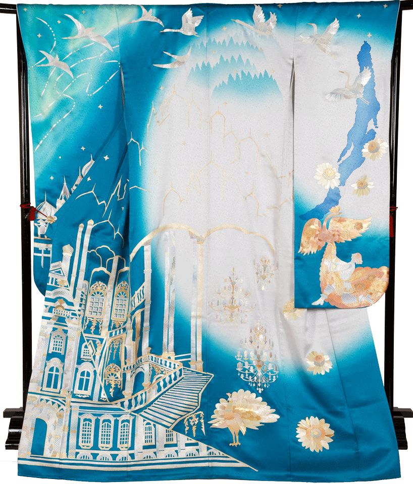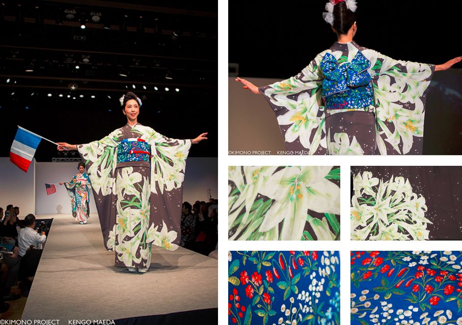 设计者将与法国波旁王朝颇有渊源的百合花,大胆地运用到整件和服上,展现法国的简约美。