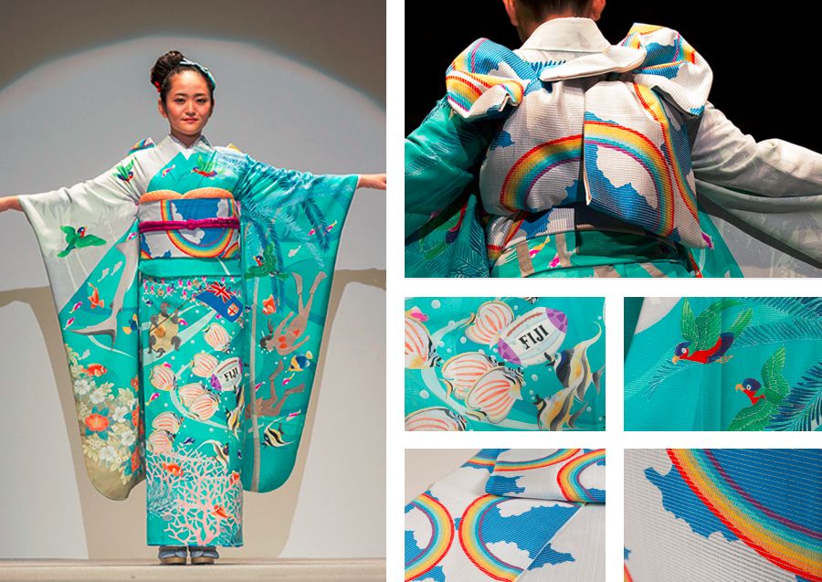 为各国定制的和服都采用了该国代表性的颜色及图案等元素。