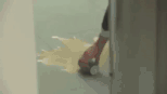 一边洗刷刷、洗刷刷,一边还抬起头来和身边的说笑。可能是在自嘲自己,不小心把咖啡打翻了吧…… 可能是没想到,首相打扫卫生的手法,居然还比较娴熟。扫着扫着……竟然吸引来了一群“阿姨粉”……