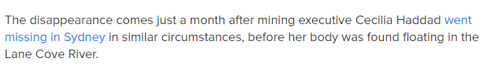 一个月前Cecilia Haddad也是自悉尼突然失联,失联之前还出席了一个烧烤party,并在第二天和朋友通了电话,但是之后便没了音信。