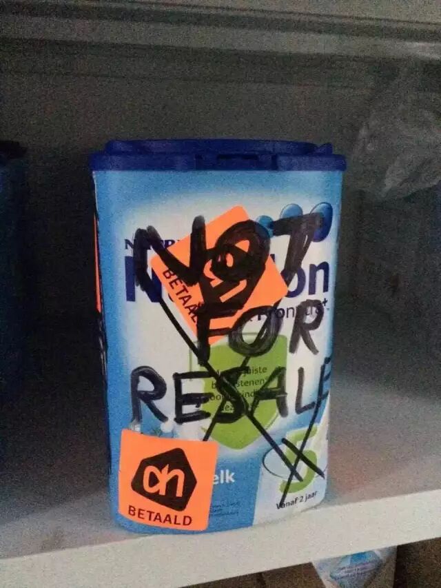 不少在国外买过奶粉的朋友们,想必也曾被售货员用怀疑的眼神打量过,好像买奶粉是做了对不起别人的事情一样…… 荷兰超市 惊现中文 当然,不仅是德国。近几年,中国奶粉代购与荷兰人民之间的“斗争”,也一直是两国的热门话题。而荷兰人民在这场“战役”中,可谓是费尽心机!