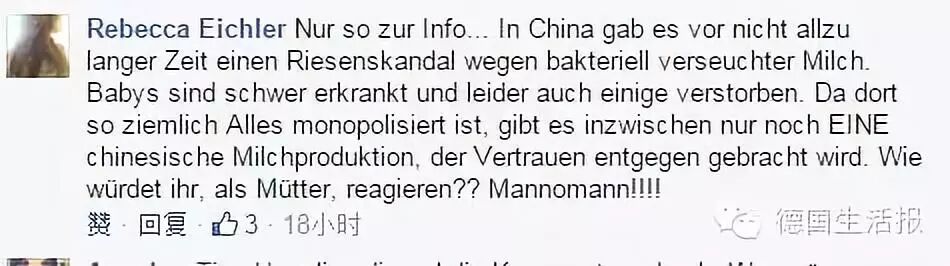 这位网友则表示:难道中国人不可以购物了吗? 你们这样写标题就好像中国人是在偷而不是付钱买一样。现在德国出现这种问题,你们应该怪罪生产商而不是消费者。德国宝宝会因此饿死吗?德国有这么多种奶粉出售的说。