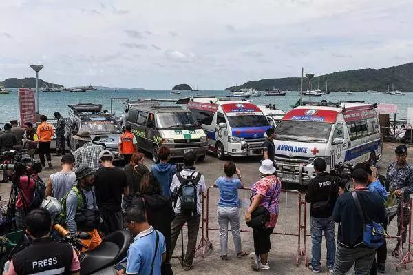 泰国普吉府尹第一时间指挥救援队,连同海军、水警、旅游警察等相关部门,搜救船上所有游客。