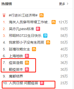 在微博热搜榜上,“疫苗”的几个关键词迅速开始“顶上”,