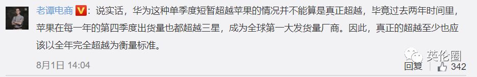 @老谭电商:说实话,华为这种单季度短暂超越苹果和情况并不能算是真正超越,毕竟过去两年时间里,苹果在每一年的第四季度出货量也都超越三星,成为全球第一大发货量厂商。因此,真正的超越至少也应该以全年完全超越为衡量标准。