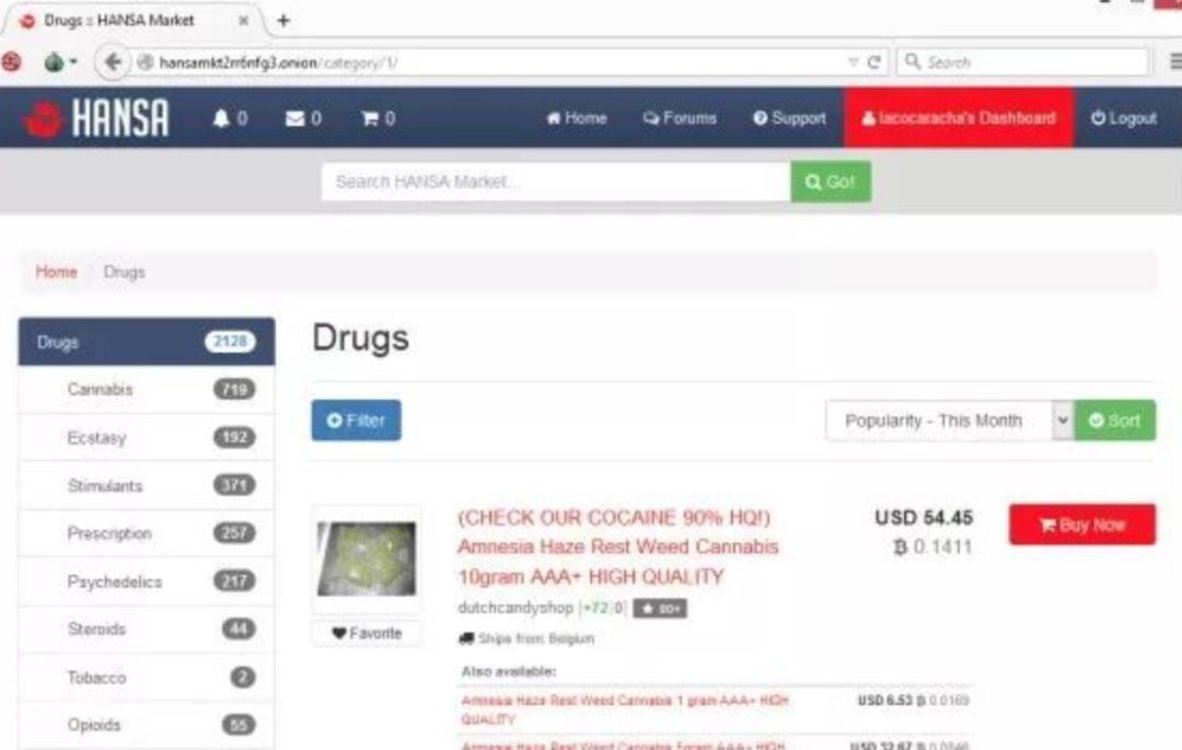 据称,每个Telegram的用户都会在访问前,收到“网站可能非法”的提示,但是那些提供商隐藏在匿名账户后,使用了加密处理。并且,Telegram并不会提供服务数据信息,因此,犯罪分子轻而易举就可在这一平台进行交易。 调查显示,去年6月荷兰警方查获并掌控了两个大型的非法暗网组织。其中一处(汉莎市场,Hansa Market)是世界上最大的“非法网络黑市”,也是网络世界中最名的匿名网站和暗网地带。