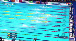 虽然他在400米自由泳比赛上, 输给了霍顿……