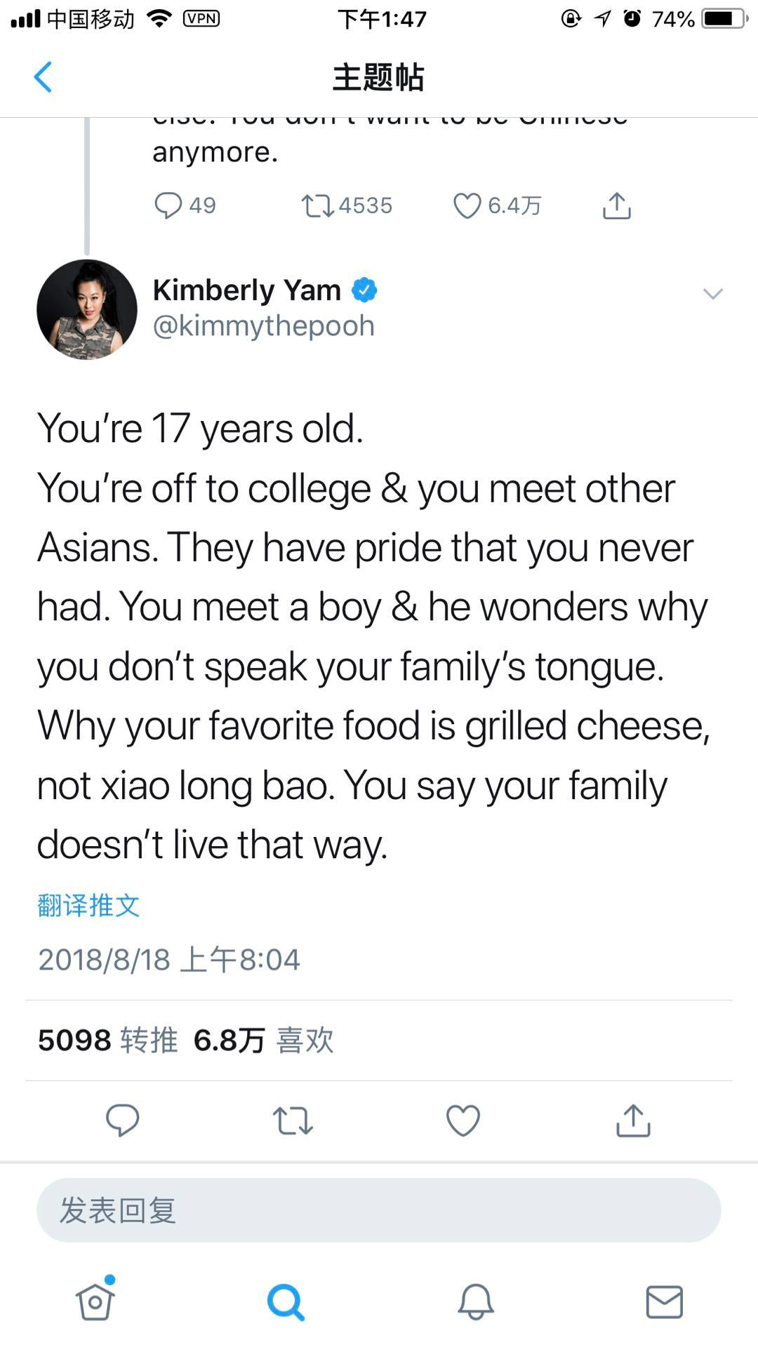 在金伯莉推文下数以万记的评论中,有人在埋怨自己的亚裔父母,埋怨自己的“异族血统”,有人在控诉,指责当年那些“欺辱”过自己的同学,也有人,在为当年的轻狂行为道歉。