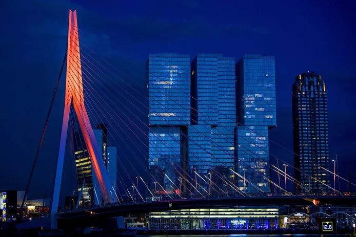 伊拉斯谟桥(Erasmus Bridge)是一项伟大的工程,也是每一个参观鹿特丹的人行程上的必游景点。800米长的大桥由浅蓝色钢制成,其单臂桥塔直冲云霄,并由40根钢拉索固定。大桥最高处为139米,在荷兰语中名为Erasmusbrug,因其单一的不对称桥塔的独特形状又被当地人称为天鹅桥(De Zwaan)。伊拉斯谟桥横跨新马斯河,是连接鹿特丹北部和南部的重要枢纽。要探索这座大桥,骑车游览是不二之选。