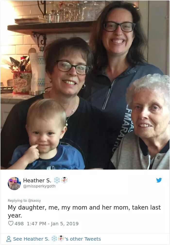 这个挑战其实就是抖音上网友们在玩的四代同堂的一个梗
