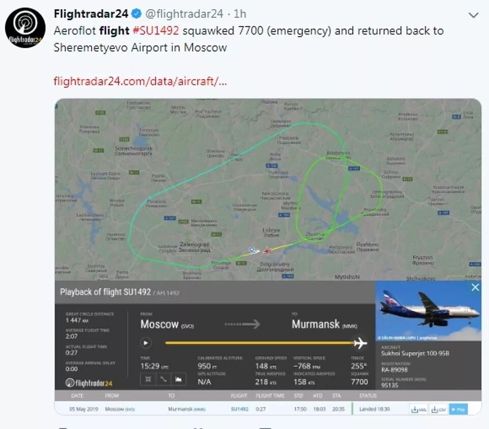 航班上的乘客德米特里∙赫列布什金称,是闪电击中了客机。