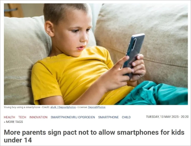 这项名为“Smartphonevrij Opgroeien”(意为无智能手机成长)的协议旨在推动"消除小学生持有智能手机的社会压力"。