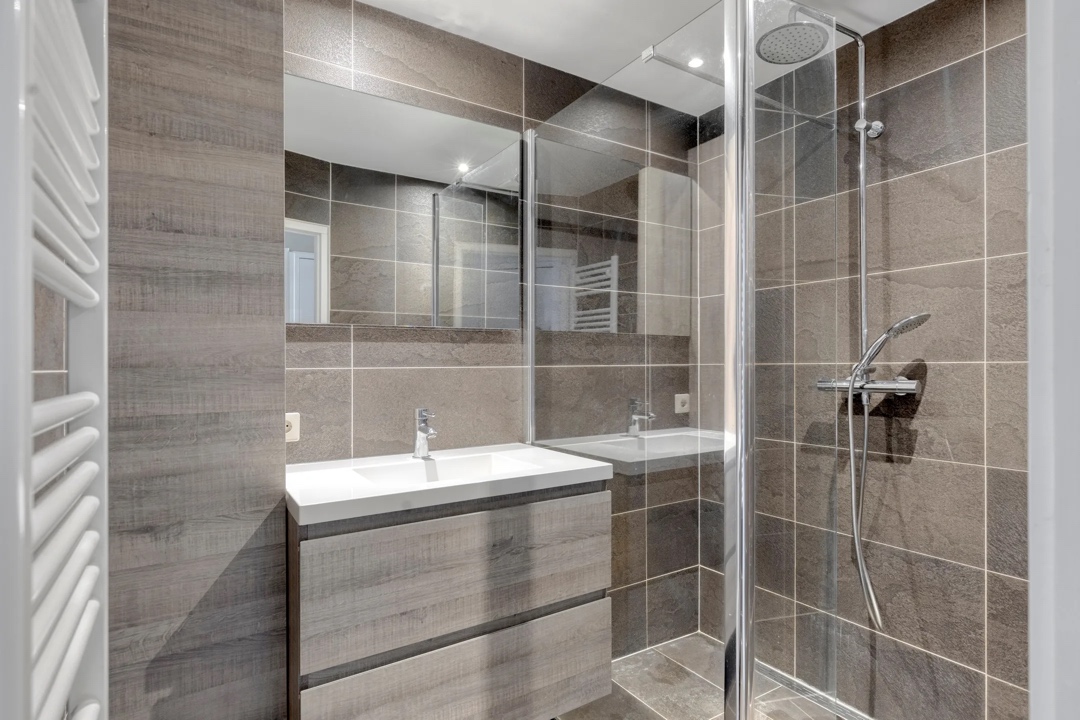 两室一厅,共66平配有两间卧室,后卧室可直接通往阳光充足的阳台。开放式厨房客厅配备了多种嵌入式电器。带步入式淋浴间的现代化浴室。
