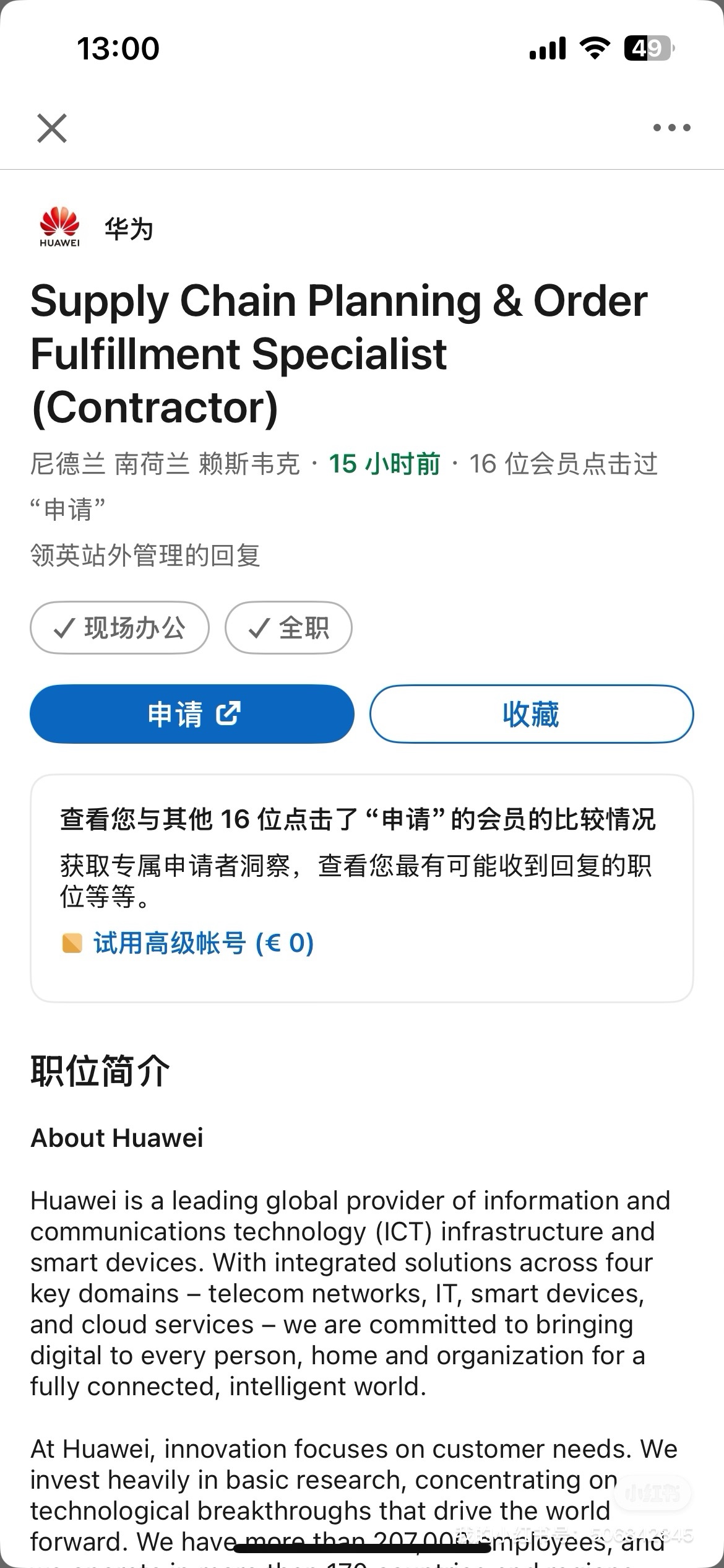 [招人] 华为供应链招聘,欢迎投递领英链接