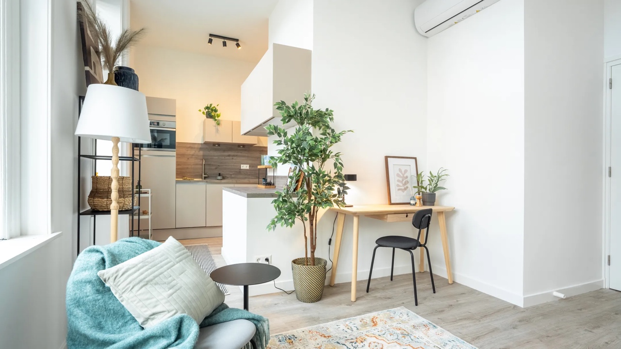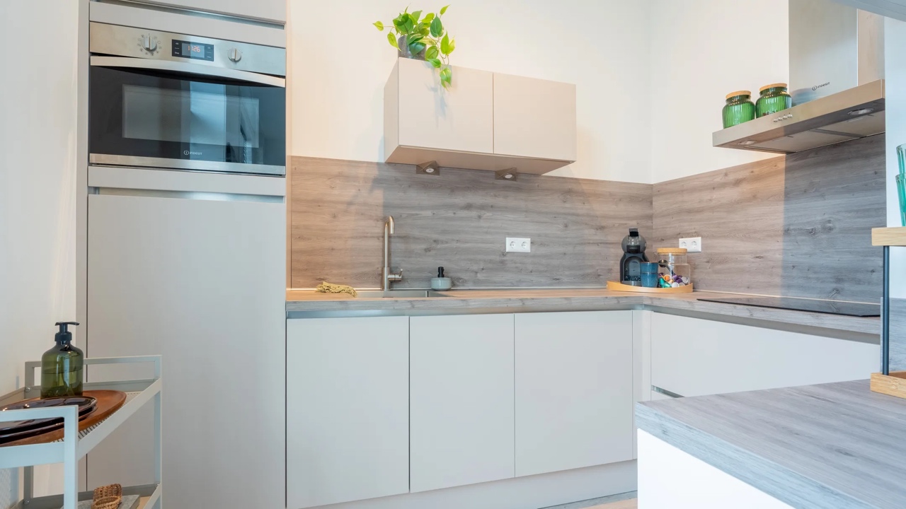 一室一厅,共40平,两居室公寓,配备了最新的便利设施。厨房配备电磁炉、抽油烟机、带冷冻室冰箱和洗碗机的厨房。独立卫生间,浴室配备淋浴和洗手池。