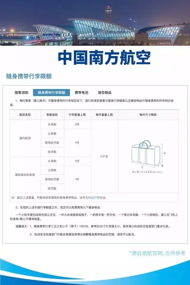 民航局目前对于随身行李的规定为(下文会有更多细节):