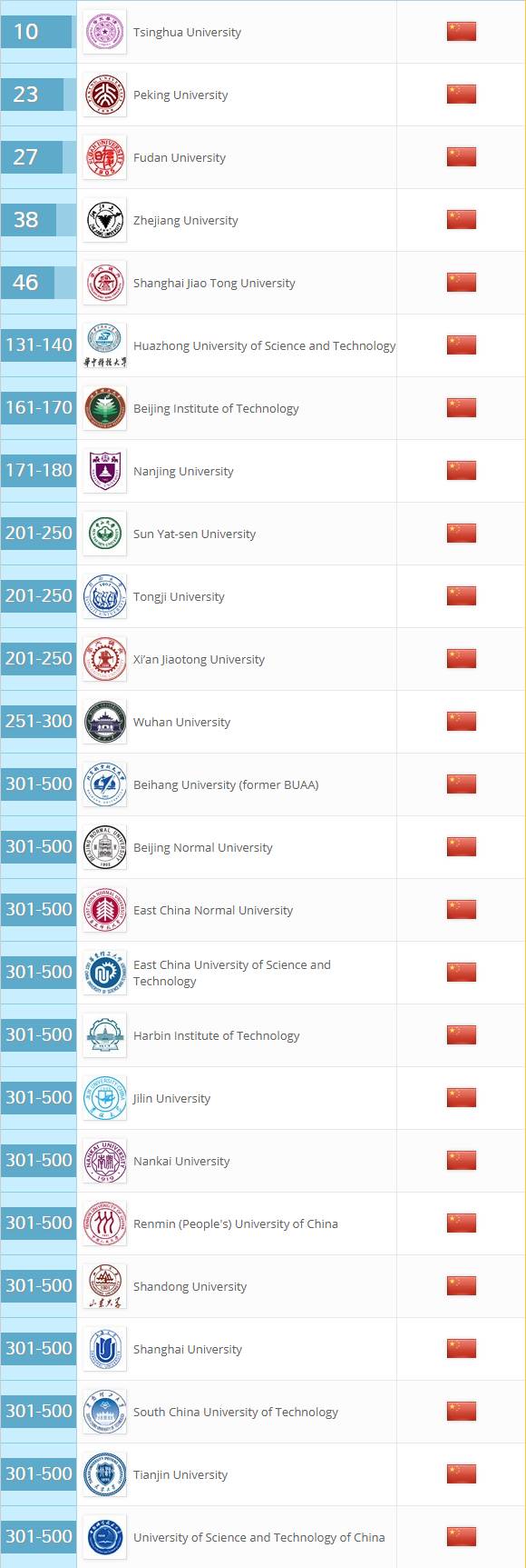 最后, 再来看一下国内高校排名! 清华大学排名国内首位 然后分别是北京大学、复旦大学、浙江大学、上海交通大学、 华中科技大学、北京理工大学、南京大学 ……
