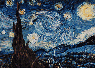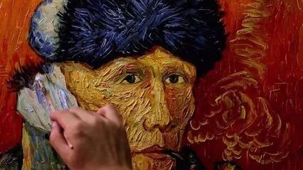 赵小勇走进美术馆 看到《星空》、《咖啡馆》 还有他画了无数次的《向日葵》 最后走到梵高自画像前 端详了很久 熟悉又陌生 嘴里一直念叨着