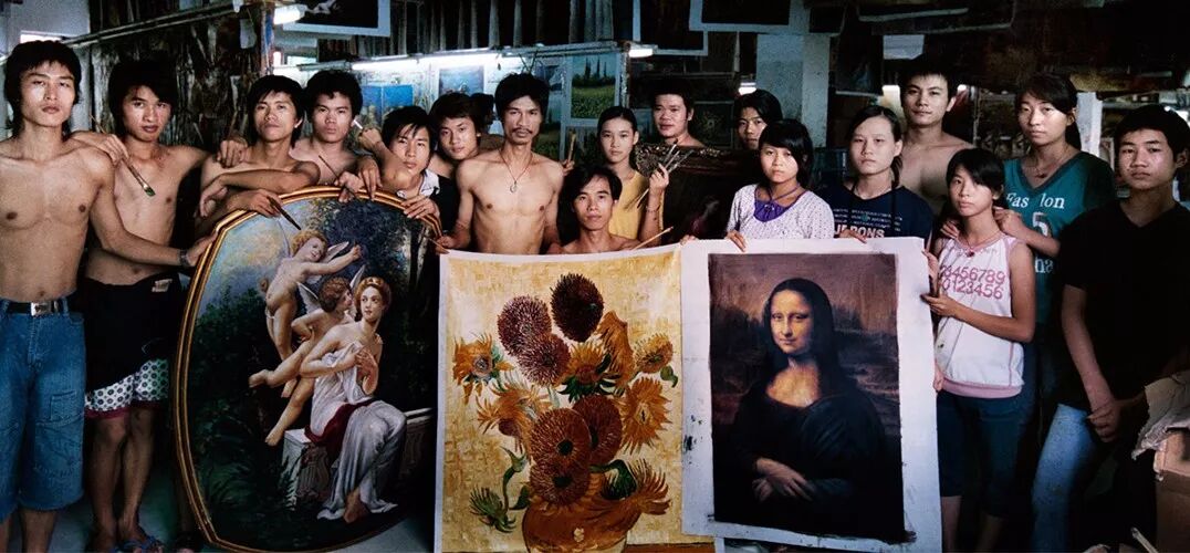 大芬村的画工基本上都是农民工 完全没有任何绘画基础 都是从头开始学起 调色、用笔、临摹 短短一个月的时间就能独自完成 在自己学有小成之后 他们还会叫上自己的家人和老乡 一起来大芬村学画画 于是一传十十传百 大芬村就这样慢慢地 成了名副其实的油画村 有人说 大芬村充满了艺术气息 但是这里的画工 却没有一个人是真正的艺术家 画画只不过是他们谋生的手段 而他们也只是维持着最低生活标准 高额的利润最终还是 流向了油画中间商的口袋