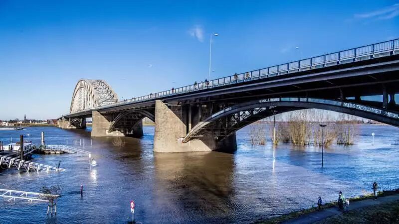 地处莱茵河下游的荷兰也没能置身事外,目前,位于内梅亨东部的洛比特(Lobith)水位已达到14米,预计周二晚间经过白天的雨水之后,预计水位将达到14.65米,为N.A.P.(标准阿姆斯特丹水位)的峰值。
