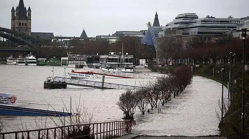 而飓风的余威仍在持续发酵:由于连续降雨,北威州境内的莱茵河河段水位一直上升,科隆昨天的水位线已经深达6.8米——比第一条洪水警戒线高出了60厘米,随后继续上涨到7米,据防汛信息中心预测,明天很可能会达到8米。根据规定,当科隆的水位超过8.3米时,航运交通将必须全面暂停。