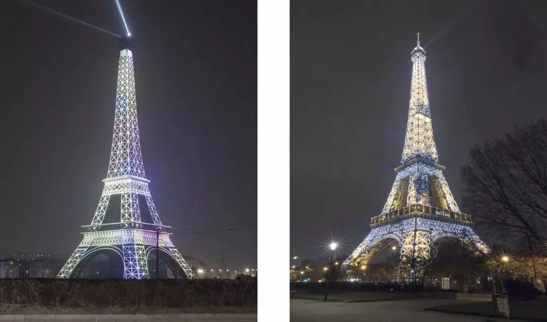 每当夜幕降临,视线迷离, 举世闻名的埃菲尔铁塔, 你能分出哪个是假,哪个是真?