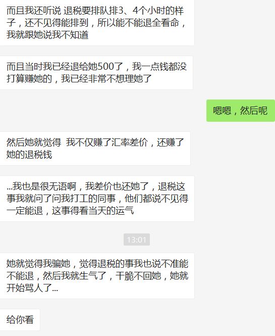 本来以为这样就可以了,退了500人民币,应该可以平息纠纷了吧?