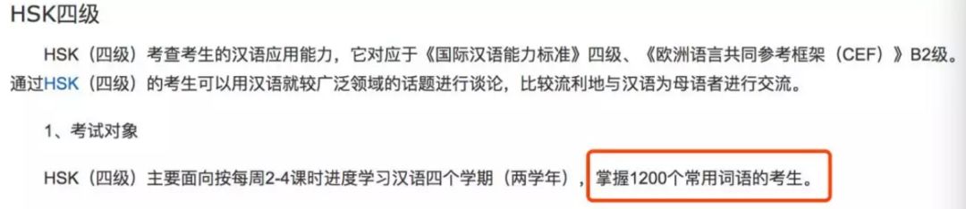 HSK的评定标准分为六级,已知四级要求1200个单词,其他词汇量标准如下: