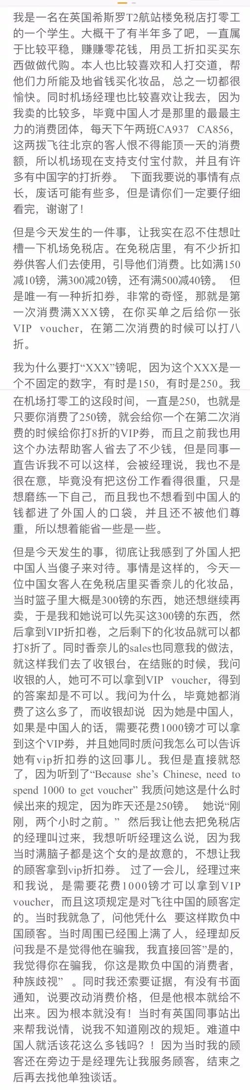 但是,昨日一位自称在英国伦敦希斯罗机场第二航站楼免税店打零工的中国留学生,爆料了这样一件事儿,迅速点燃了同胞们的愤怒情绪......