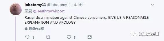 网友lobotomy11:这是对中国客人的种族歧视。请给我们一个合理的说法并道歉。