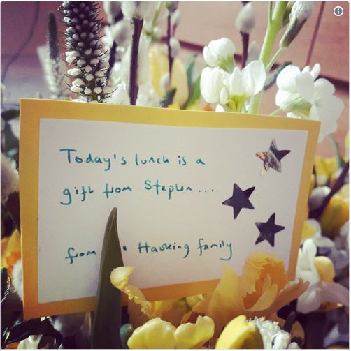 当然也有工作人员的留言↓↓↓ 真的是感动到哭~ 这是多么慷慨啊。在这样一个让人悲伤的情况下还能考虑到他人,真的让人难以置信地感动。我们的客人对他们享用到的来自霍金的午餐感到非常开心。