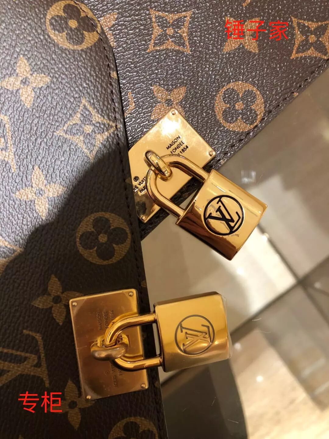 现在包包是假的无疑,会是哪里出了问题呢?我把当时锤子在专柜给我拍的图,和她寄出时拍的图,以及最后图都研究了一遍。发现,铁证如山啊老哥。