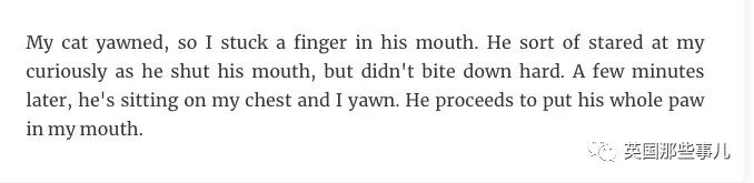 几分钟后,它坐我胸上,我开始打哈欠,它伸出小爪子,准备也往我嘴里塞…”