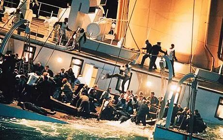 像电影中描绘的那样,船只才航行一周不到,就撞上了冰山,沉入海底。