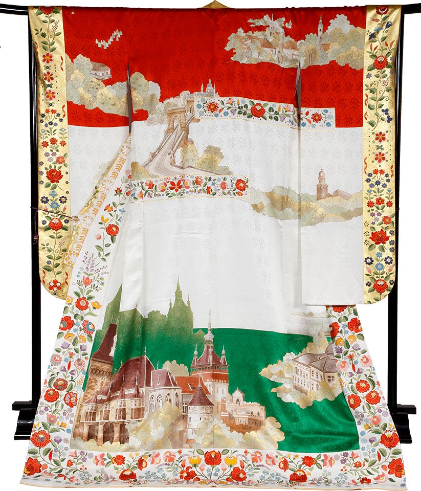 立陶宛的和服,以首都维尔纽斯的世界文化遗产,维尔纽斯的教堂为图案,还加入国花芸香元素。