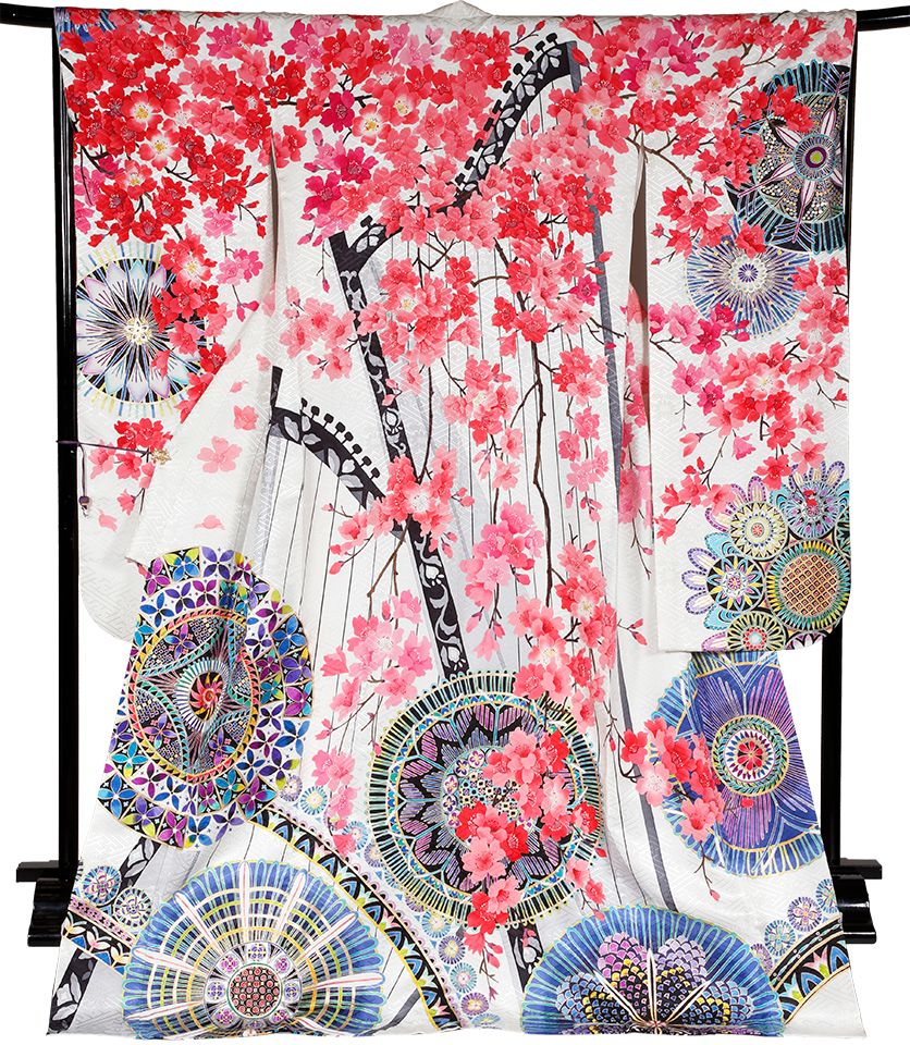 设计者将与法国波旁王朝颇有渊源的百合花,大胆地运用到整件和服上,展现法国的简约美。