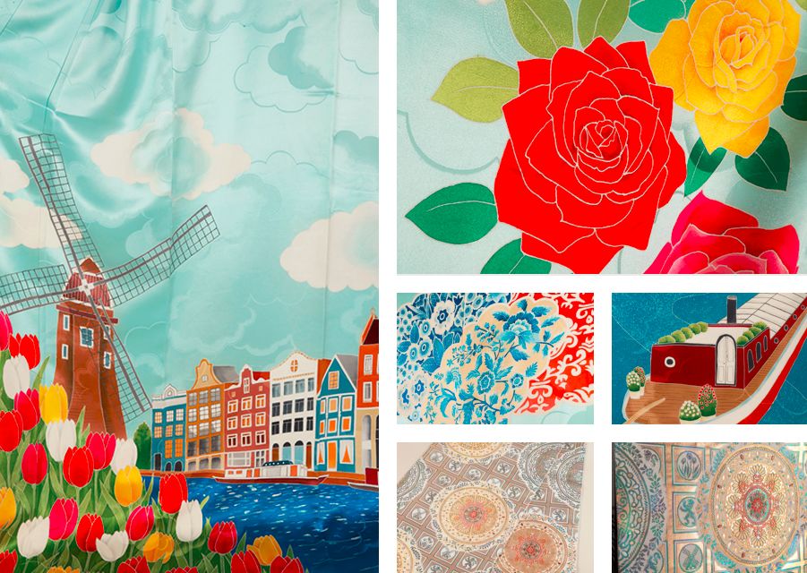 为各国定制的和服都采用了该国代表性的颜色及图案等元素。