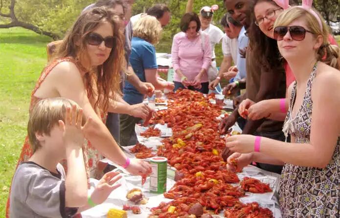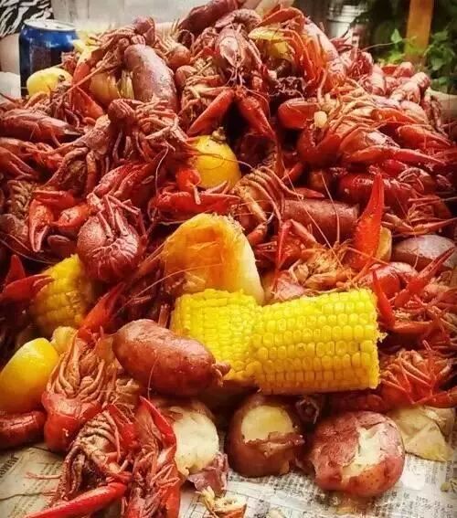 来自这群小龙虾故乡美国南部的传统做法:煮一锅加入了盐、辣椒、柠檬、大蒜、洋葱和月桂的沸水,把洗干净的小龙虾丢进去煮。。。然后捞起来配土豆和甜玉米一起吃。就这么简单,粗暴,没有创意。。。