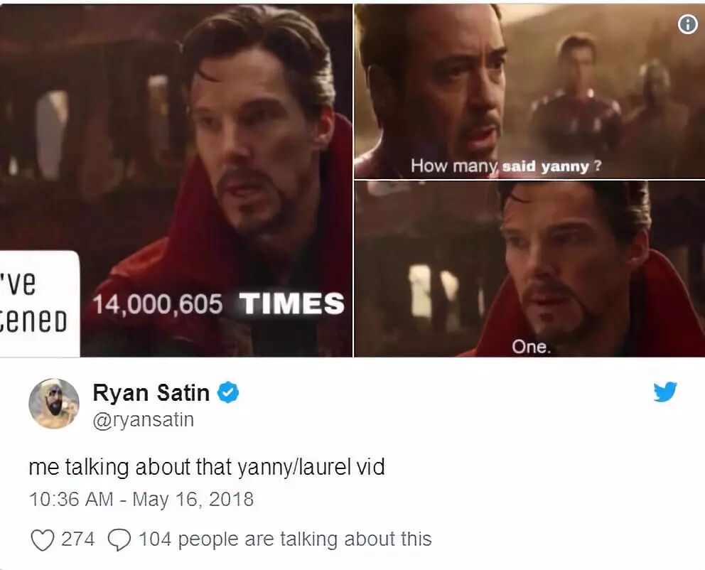 “为我自己默哀:现在我同时听到了Yanny和Laurel。”