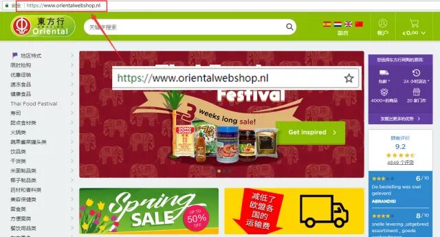 打开浏览器输入 https://www.orientalwebshop.nl/  进入东方行网上超市网购页面! STEP2