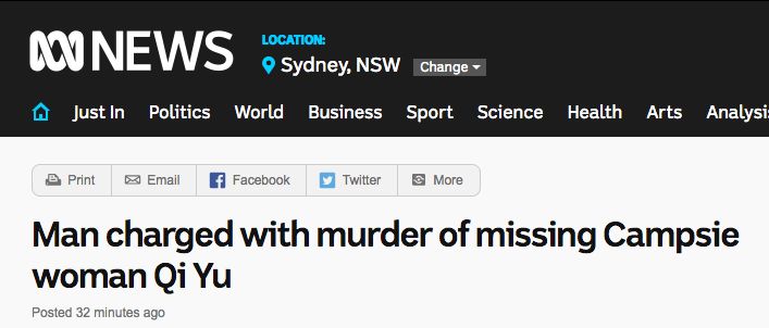 在24小时内,为了找到这个姑娘,众多澳洲本地媒体都报道过Qi Yu失踪超过72小时的新闻。