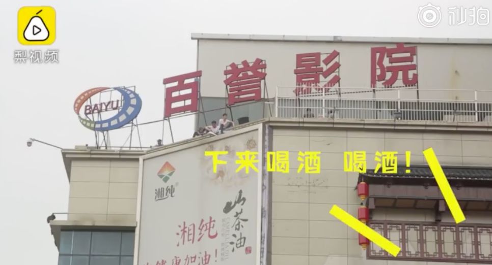 “下来喝酒!小哥哥下来喝酒!”